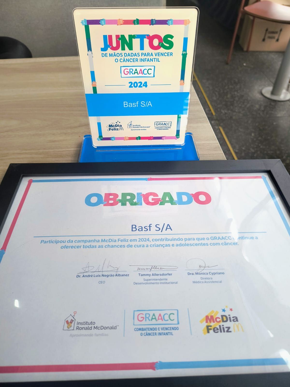 A BASF tem o prazer de anunciar que foi homenageada como uma das 20 maiores empresas contribuintes da campanha McDia Feliz, promovida pelo GRAACC em 2024. Este reconhecimento destaca o compromisso da empresa em fazer a diferença na vida de crianças e adolescentes em tratamento contra o câncer.