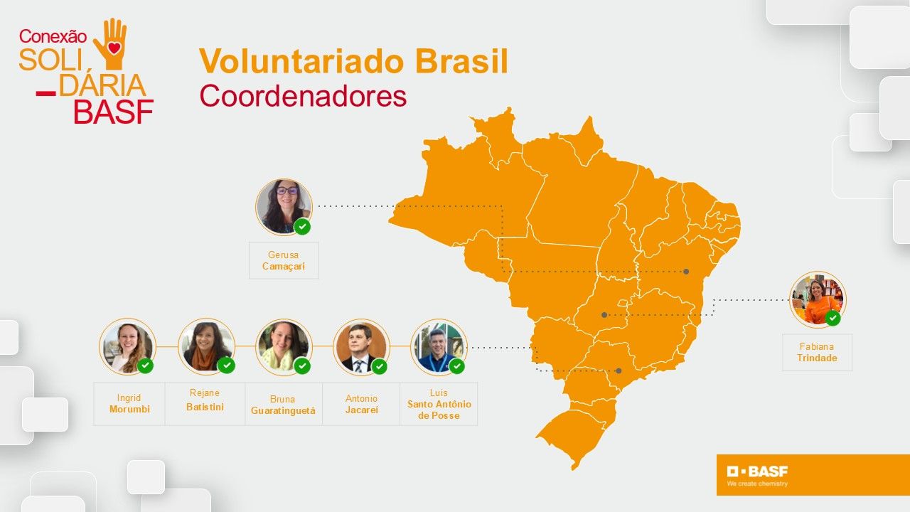A área de Engajamento Social da BASF supervisiona as iniciativas de responsabilidade social e voluntariado, garantindo que estejam alinhadas as políticas da empresa e os Objetivos de Desenvolvimento Sustentável (ODS) da Organização das Nações Unidas (ONU). O coordenador da comissão local, por sua vez, pode fornecer informações mais específicas sobre as atividades de voluntariado que estão sendo realizadas na região e como os colaboradores podem se envolver.